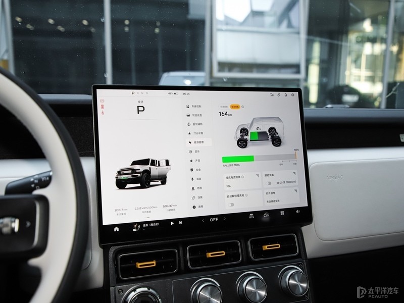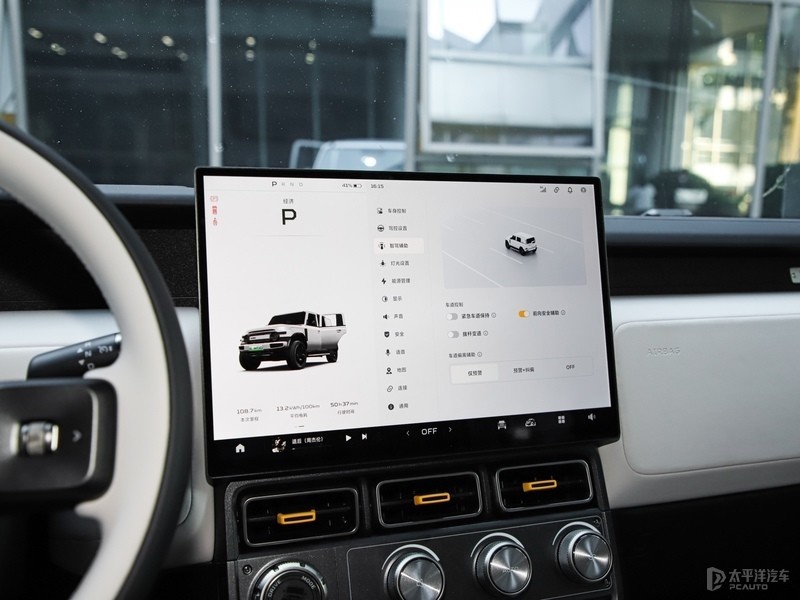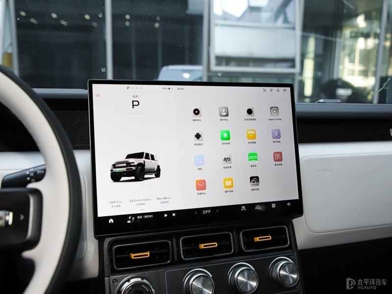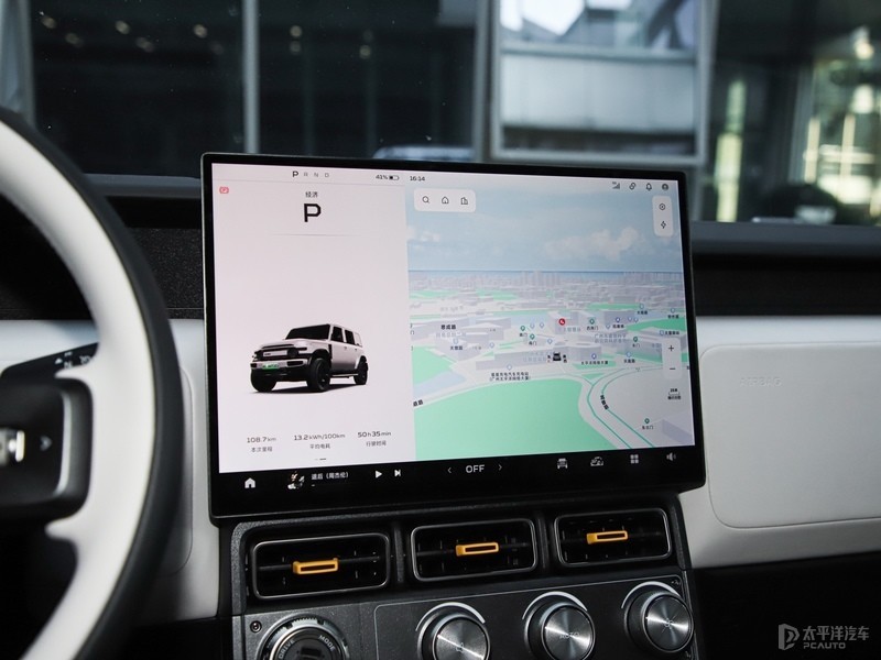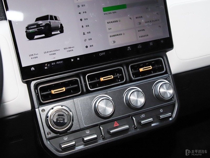 内饰方面,iCAR V23整体风格兼顾硬派与时尚,运用了很多矩形的设计元素,加上双拼色设计和物理实体按键,连带空调出风口硬派感较为浓厚。其次中控屏下方保留部分旋钮和物理功能按键,并没有完全集中到中控屏。